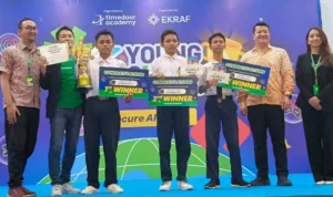 Diselenggarakan Timedoors Academy, kompetisi telah berlangsung di Gedung Film Nasional Indonesia, Jakarta Selatan, Minggu (14/12). Sebuah kompetisi yang menantang peserta untuk mempresentasikan proyek digital berbasis pengembangan, mendemonstrasikan game yang dibuat, serta menjawab pertanyaan dewan juri.