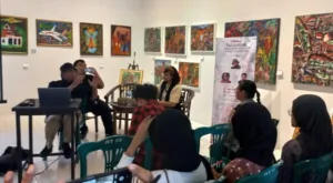 Anugrah “Uga” berbicara dalam sebuah talkshow jelang pameran “Struggle. Hanya Berbeda dan Itu Indah”, bersama Prof. Dr. Hajar Pamadhi dan narasumber lain. Sabtu (23/8/2025).(Foto: Harta Nining Wijaya/EDUKATOR)