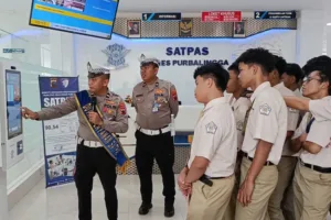 Mereka juga berkunjung ke Satuan Penyelenggara Administrasi SIM (Satpas) untuk mempelajari proses penerbitan Surat Izin Mengemudi (SIM) dan berkesempatan mempraktikkan cara berkendara yang aman dan tertib.