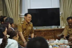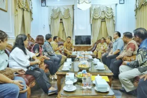 PURBALINGGA, EDUKATOR–Bupati Purbalingga H Fahmi M Hanif menerima audiensi jajaran pengurus Badan Kerjasama Antar Gereja (BKSAG) Kabupaten Purbalingga, Senin (25/08/2025), di ruang VIP Rumah Dinas Bupati. Audiensi ini menjadi momentum perkenalan sekaligus silaturahmi antara Pemerintah Kabupaten Purbalingga dengan pengurus BKSAG periode 2025–2027.Suasana audiensi Bupati Fahmi dengan sebagian pengurus BKSAG Purbalingga