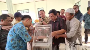 Tim Kabupaten Wonosobo yang terdiri atas Tukijap, Erna Yuliyanti, dan Wisnu Ari Wibowo, S.P., hadir di Blora, didampingi Kepala Dinas Pangan, Pertanian, dan Perikanan Kabupaten Wonosobo, Ir. Dwiyama Satyanu Budyayu, M.Si.Alat pengemas vakum untuk mendukung komersialisasi beras Sri Kawung