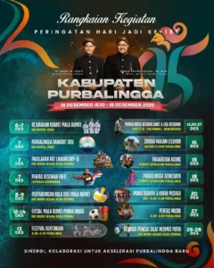PURBALINGGA, EDUKATOR–Menutup akhir tahun 2025, warga Purbalingga disuguhi banyak tontonan menarik sebagai rangkaian peringatan Hari Jadi ke-195 Kabupaten Purbalingga yang diperingati setiap tanggal 18 Desember. Beragam kegiatan mulai dari kompetisi olahraga, festival seni budaya, hingga acara religius telah disiapkan Pemerintah Kabupaten Purbalingga untuk seluruh lapisan masyarakat.