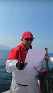 Arus air laut mewarnai posisi geladak kapal, di haluan, tempat upacara berlangsung. Kadang sedikit bergoyang, melenggok ke kanan maupun kiri. Kedalaman laut itu antara 40 hingga 70 meter. Tak sampai menyurutkan semangat maupun menghilangkan esensi jalannya upacara yang diikuti 14 orang. Sebanyak 12 orang ikut sebagai peserta upacara bendera, dan khusus dua orang sebagai petugas dokumentasi, foto maupun video.