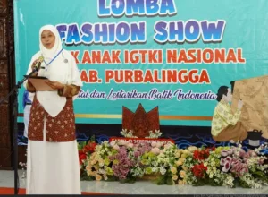 PURBALINGGA, EDUKATOR – Suasana Pendopo Cahyana – rumah jabatan Wakil Buparti Purbalingga, mendadak meriah pada Sabtu (13/9/2025). Sebanyak 36 anak TK dari 18 kecamatan se-Kabupaten Purbalingga tampil dalam Fashion Show Batik Anak IGTKI-PGRI Nasional Tingkat Kabupaten Purbalingga, yang mengusung tema: Cintai dan lestarikan Batik Indonesia..