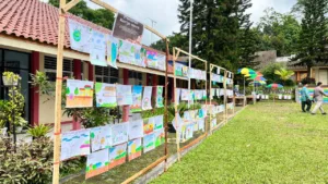 Hasil karya para murid SMPN 3 Kutasari dipamerkan terbuka di lapangan sekolah. (Foto: Humas SMPN 3 Kutasari/EDUKATOR)