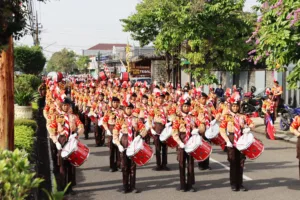 BANYUMAS, EDUKATOR--Sebanyak 122 kontingen gerak jalan dari berbagai SMP negeri maupun swasta se-Kabupaten Banyumas, dan 12 grup drumband SMP ikut memeriahkan Lomba Gerak Jalan Gembira dan lomba Drumband dalam rangka HUT ke-80 RI. Kegiatan yang mengambil start di depan Laboratorium Prodia Jalan S. Parman Purwokerto, Rabu (20/8/2025), dibuka oleh Bupati Banyumas Sadewo Tri Lastiono.