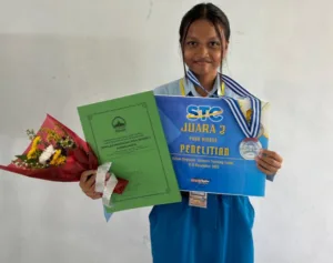 PURBALINGGA, EDUKATOR – Narella Andhika Kinanti, murid kelas 8A SMPN 3 Purbalingga keluar sebagai juara 2 bidang penelitian pada Science Training Camp (STC) 2025 . Lomba tingkat nasional yang diikuti ratusan pelajar se -Indoensia ini, diselenggarakan oleh SMAN 2 Purbalingga selama tiga hari, 9-11/12/2025, secara hybrid.