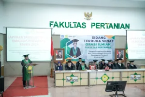Dekan Faperta, Prof. Dr. Ir. Sakhidin, M.P., dalam laporannya menyampaikan berbagai capaian fakultas selama tahun 2025. Ia memaparkan bahwa Faperta memiliki 3.817 mahasiswa aktif, memperluas kerja sama dengan mitra nasional dan internasional, serta meraih sejumlah prestasi mahasiswa tingkat nasional.