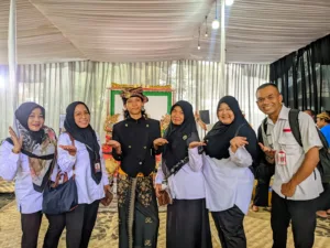 Sebagian guru Bahasa Jawa SMP Purbalingga foto bersama dalang muda Ki Lalang Jazmul Qolbi.