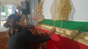 PURBALINGGA, EDUKATOR–Pementasan Wayang Suket digelar di pelataran Museum Prof. Dr. R. Soegarda Poerbakawatja Purbalingga, Rabu (26/11/2025) mulai pukul 10.00 WIB hingga 10.40 WIB. Selama kurang lebih 40 menit, dalang muda asal Kecamatan Rembang, Purbalingga, Ki Lalang Jazmul Qolbi (18), tampil memukau, membawakan lakon “Pandawa Sumunar”.