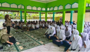 Narasumber yang merupakan pebisnis lokal sedang memberikan materi kepada para murid SMPN 3 Pengadegan. (Foto: Humas SMPN 3 Pengadegan/EDUKATOR)