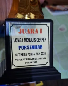 SEMARANG, EDUKATOR — Prestasi membanggakan diraih Tukijo, S.Pd, M.Pd, guru SMP Negeri 17 Semarang. Guru mata pelajaran Bahasa Jawa ini berhasil meraih Juara 1 Lomba Menulis Cerpen Porsenijar (Pekan Olah Raga , Seni dan Pembelajarabn) dalam rangka HUT ke 80 PGRI dan Hari Guru Nasional (HGN) Tahun 2025. Lomba ini diselenggarakan oleh PGRI Jawa-Tengah.
