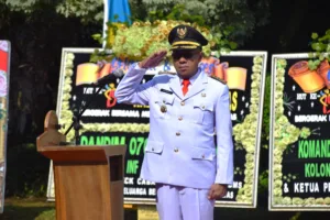 BANYUMAS, EDUKATOR–Bupati Banyumas, Sadewo Tri Lastiono, memimpin langsung Upacara Peringatan Hari Jadi ke-455 Kabupaten Banyumas di Halaman Pendopo Si Panji, Minggu (22/2/2025). Dalam momen yang bertepatan dengan satu tahun kepemimpinannya bersama Wakil Bupati Dwi Asih Lintarti, Sadewo mengajak seluruh masyarakat “brayan mbangun Banyumas” demi mewujudkan Banyumas PAS: Produktif, Adil, dan Sejahtera.