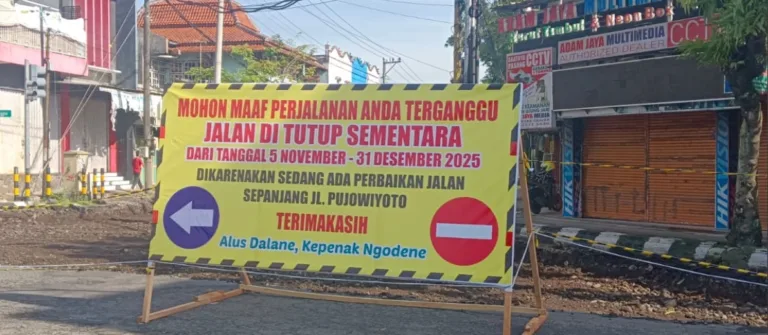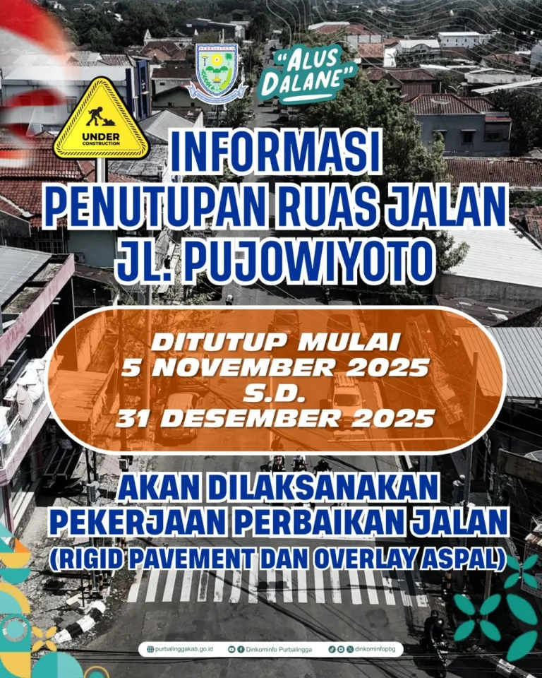 Perbaikan Dimulai, Ruas Jalan Pujowiyoto Purbalingga Ditutup