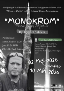 PURBALINGGA, EDUKATOR–Pameran Tunggal Fotografi bertajuk “Monokrom” karya Djentot Subechi, S.Pd, guru seni budaya SMA Negeri 2 Purbalingga akan dibuka di Kie Art Space, Dusun Peninis, Desa Sidareja, Kecamatan Kaligondang, Kabupate Purbalingga, Sabtu (2/5/2026) mendatang.