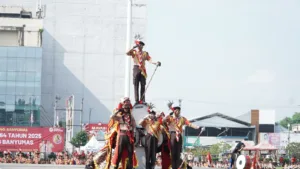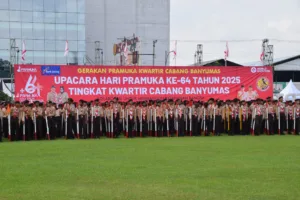 PURWOKERTO, EDUKATOR–Penampilan Drum Band Pramuka Penggalang “Gita Swara Bahana” SMP Negeri 1 Wangon memukau sekitar 3.000 peserta Upacara Hari Pramuka ke-64 Tingkat Kwarcab Banyumas di Alun-alun Purwokerto, Sabtu (20/9/2025). Aksi yang diperkuat puluhan Pramuka Garuda dan pasukan inti penggalang itu membuka rangkaian kegiatan berlangsung semarak.