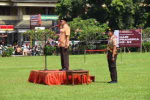 Hadir pula Ketua Kwarda Jawa Tengah Slamet Budi Prayitno, perwakilan Forkompimda, Wakil Bupati Dwi Asih Lintarti, serta tamu undangan lainnya.Peserta upacara HUT ke 64 Pramuka tingkat Kwarcab Banyumas. (Dok Humas Pemkab Banyumas)