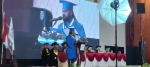Dalam prosesi wisuda, perwakilan mahasiswa asal Papua yang berpidato menyampaikan kesan dan pesan. Dia adalah Ismael Anis Karoba (29). “Hari ini bukan sekadar seremoni kelulusan, tetapi perayaan atas ketekunan dan mimpi-mimpi yang tidak pernah kita lepaskan,” ujar sarjana manajemen itu.