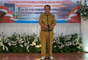 PURBALINGGA, EDUKATOR–Kepala Desa Penolih, Kecamatan Kaligondang, Kabupaten Purbalingga, Suparno, Selasa (14/4/2026) melantik dua perangkat desa, di Balai Desa Penolih. Mereka yang dilantik dan diambil sumpahnya itu, yakni Dede Setiadi (32 tahun) sebagai Kepala Seksi Pelayanan, dan Mohammad Mardhani (28) sebagai Kepala Urusan Tata Usaha dan Umum.