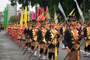 PURWOKERTO, EDUKATOR — Kirab pusaka memeriahkan Hari Jadi ke-455 Kabupaten Banyumas, Minggu (15/2/2026), berlangsung meriah. Prosesi sakral ini menjadi tontonan menarik bagi warga masyarakat di sepanjang Jalan Jenderal Soedirman, Purwokerto. Rute kirab menempuh sekitar dua kilometer, dimulai dari Pendopo Wakil Bupati menuju Pendopo Si Panji.