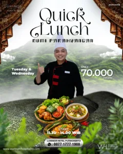 General Manager Luminor Hotel Purwokerto Rio Nofiando Atje menegaskan program ini merupakan bentuk apresiasi kepada masyarakat. “Kami ingin menghadirkan sajian berkualitas dengan harga terjangkau yang bisa dinikmati semua kalangan,” ujarnya yang didampingi Marketing Communication Anggoro Yudha Pratama di Luminor Hotel Purwokerto, Sabtu (25/4/2026).