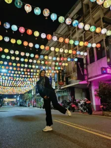 Ndari di salah satu sisi jalan dekat pusat kota Douliu, Yunlin yang dipenuhi lampion menjelang Imlek. (Foto: Dok pribadi/EDUKATOR)