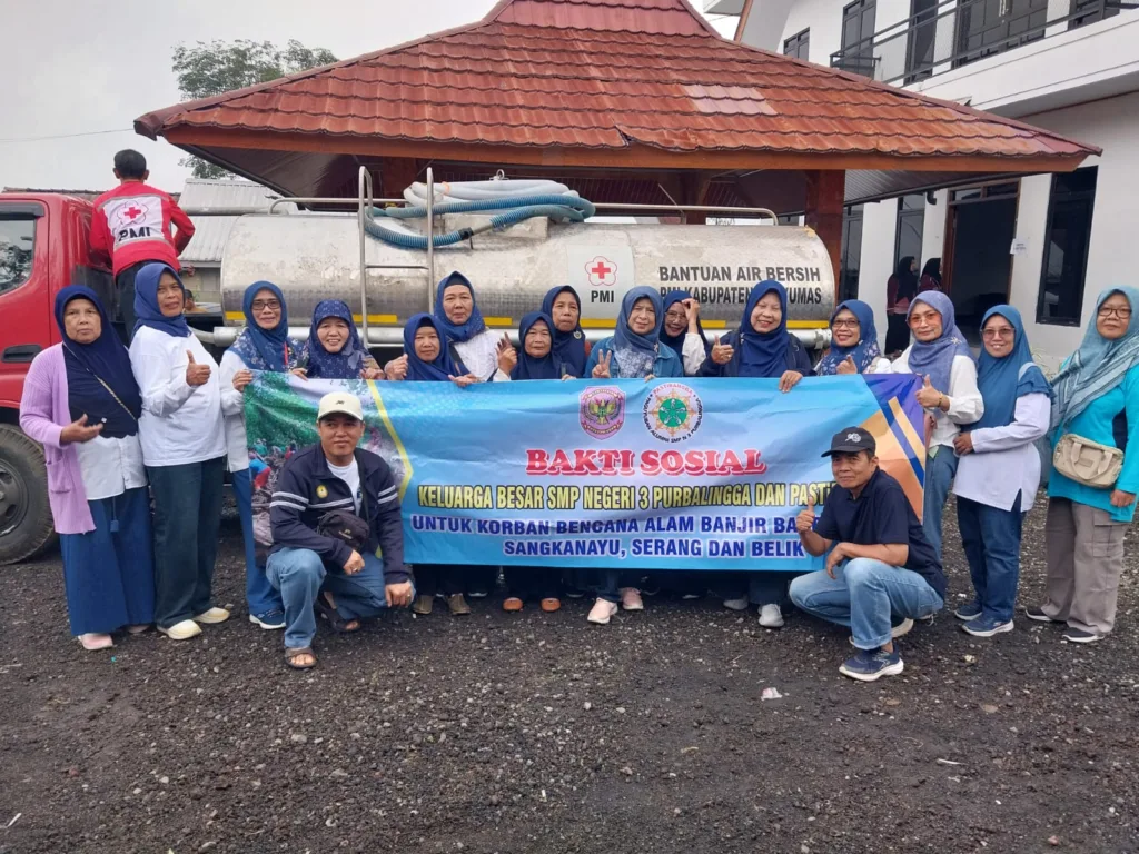 PASTIBANGGA dan Keluarga Besar SMPN 3 Purbalingga Berbagi untuk Korban Banjir Bandang