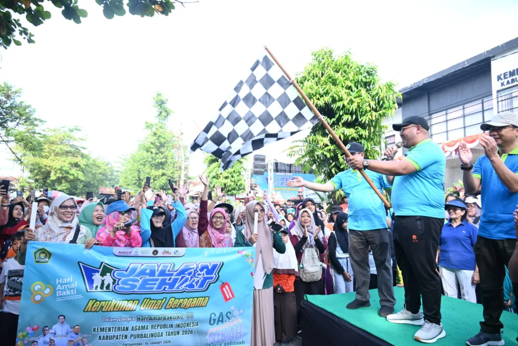 Wakil Bupati Purbalingga Dimas Prasetyahani mengibaskan bendera start alan sehat kerukunan umat beragama. PURBALINGGA, EDUKATOR–Semangat kerukunan beragama di Kabupaten Purbalingga semakin menguat. Hal itu terlihat dari kegiatan Jalan Sehat Kerukunan Umat Beragama yang digelar Kantor Kementerian Agama (Kemenag) Kabupaten Purbalingga sebagai puncak Hari Amal Bhakti (HAB) ke 80 Kemenag, Sabtu (10/1/2026). Kegiatan yang diikuti 8000 […]
