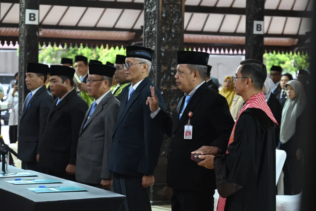 Dekan Fakultas Peternakan UGM, Prof Ir Budi Guntoro S.Pt M.Sc, Ph.D IPU ASEAN Eng (kanan) memberikan sertifikat profesi Insinyur kepada Ir. Prayitno, M.Si, IPU, yang juga Kepala Dinas Pertanian, Pangan dan Perikanan Kabupaten Purbalingga. (Foto Humas UGM/EDUKATOR) YOGYAKARTA, EDUKATOR–Universitas Gadjah Mada (UGM) Yogyakarta melantik sebanyak 901 insinyur baru pada periode II Tahun 2025 yang berlangsung […]
