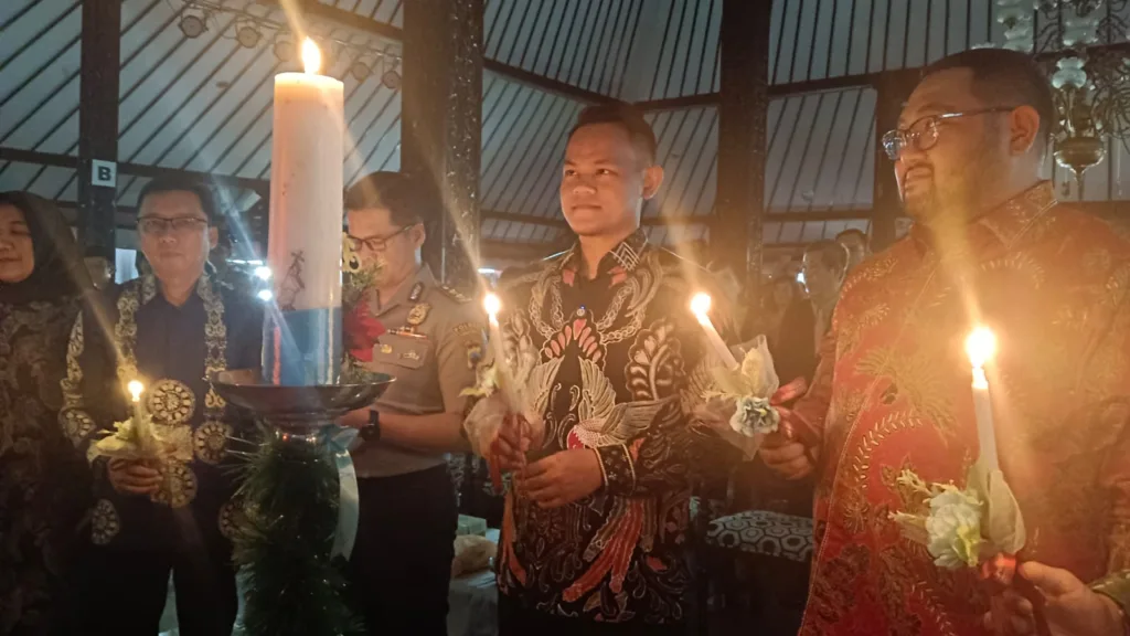 Bupati Fahmi M Hanif, Wakil Bupati Dimas Prasetyahani , dan jajaran Forkopimda terdiri Kapolres, Dandim, Kajari, Ketua Pengadialn Negeri Purbalingga, Danlanud, Danyon 406 kompak menyalakan lilin bersama pada perayaan Natal BKSAG-TNI Polri di Pendopo Dipokusumo , Jumat malam (26/12/2025). (Foto: Prasetiyo/EDUKATOR) PURBALINGGA, EDUKATOR–Bupati Purbalingga Fahmi M Hanif, Wakil Bupati Dimas Prasetyahani, dan jajaran Forkopimda menyalakan […]