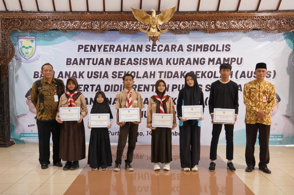 Penyerahan secara simbolis beasiswa kurang mampu bagi AUSTS, Peserta Didik Rentan Putus Sekolah dan Anak Tidak Sekolah. PURBALINGGA, EDUKATOR–Sebanyak 1.598 anak di Purbalingga menerima beasiswa kurang mampu . Mereka terdiri Anak Usia Sekolah Tidak Sekolah (AUSTS, Peserta Didik Rentan Putus Sekolah (PDRPS) , dan Anak Tidak Sekolah (ATS) . Total beasiswa yang digelontorkan oleh Pemerintah […]