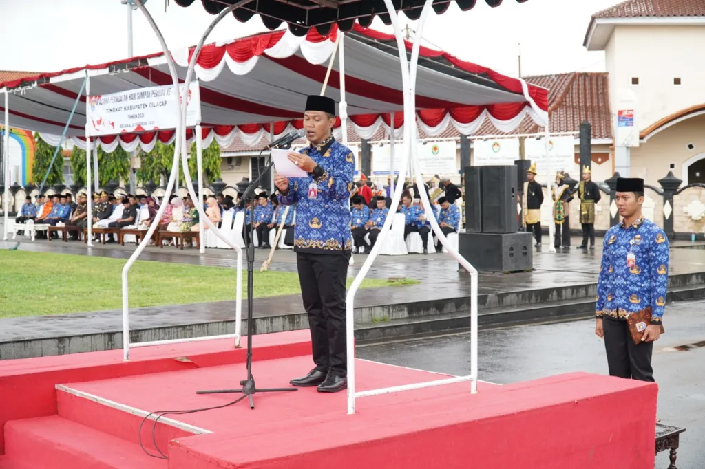 Bupati Cilacap, Syamsul Auliya Rachman saat memberikan sambutan pada peringatan Hari Sumpah Pemuda, Selasa (28/10/2025) di Alun-alun Cilacap. CILACAP, EDUKATOR—Pemuda jangan hanya menjadi pelengkap sejarah, tetapi pencetak sejarahnya sendiri. Pesan tegas itu disampaikan Bupati Cilacap, Syamsul Auliya Rachman, saat membacakan sambutan Menteri Pemuda dan Olahraga (Menpora) RI, Erick Thohir, dalam Upacara Peringatan Hari Sumpah Pemuda […]
