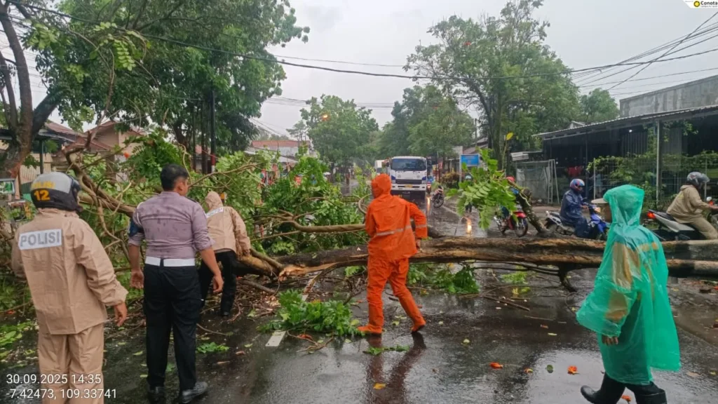 *Pohon Tumbang, Sejumlah Rumah Rusak dan Tak Ada Korban Jiwa PURBALINGGA, EDUKATOR–Hujan deras disertai angin kencang menerjang wilayah Kecamatan Kalimanah dan Kecamatan Padamara, Kabupaten Purbalingga pada Selasa (30/9/2025) sekitar pukul 13.30 WIB. Peristiwa itu mengakibatkan sejumlah rumah rusak, pohon tumbang, serta mengganggu akses jalan provinsi Purbalingga–Banyumas. Total kerugian ditaksir mencapai Rp53 juta. Kepala Pelaksana Harian […]