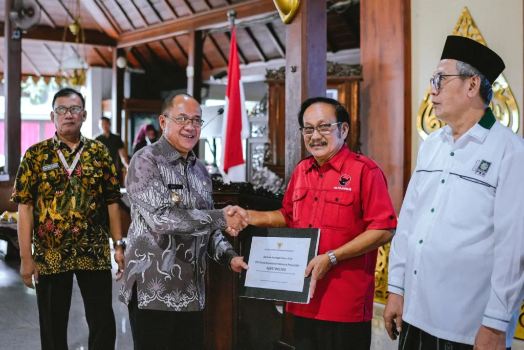 *Dorong Transparansi dan Penguatan DemokrasiBupati Banyumas Sadewo Tri Lastiono menyerahkan bantuan kepada Ketua DPC PDI Perjuangan Kabupaten Banyumas dr Budhi Setiawan sebagai partai penerima bantuan terbanyak. BANYUMAS, EDUKATOR – Pemerintah Kabupaten Banyumas menyalurkan bantuan keuangan Rp 3.081.645.000 atau Rp 3 miloar lebih kepada sembilan partai politik yang memperoleh kursi di DPRD Kabupaten Banyumas hasil Pemilu […]