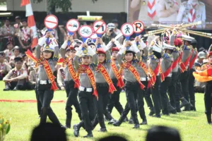 Penampilan polisi cilik ikut memeriahkan apel besar Hari Pramuka ke 64 di lapangan Purbalingga Lor