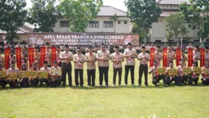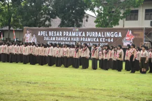 PURBALINGGA, EDUKATOR – Wakil Bupati Purbalingga, Dimas Prasetyahani, SE MM mengajak Gerakan Pramuka untuk konsisten hadir di tengah masyarakat, terutama dalam penanggulangan bencana dan kegiatan sosial. Hal itu ia sampaikan saat menjadi pembina Apel Besar Hari Pramuka ke-64 Tingkat Kwartir Cabang (Kwarcab) Purbalingga di Lapangan Sepak Bola Purbalingga Lor, Selasa (30/9/2025).