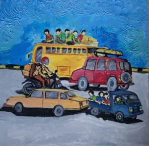 Karya lukis berjudul “Mudik”, salah satu yang akan dipamerkan
