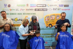 SLEMAN, EDUKATOR–Ratusan pengunjung Jogja City Mall (JCM)  di Jalan Magelang Km 6 Sleman, Daerah Istimewa  Yogyakarta  rela melakukan aksi cukur gundul sebagai bentuk solidaritas bagi anak-anak penderita kanker. Kegiatan bertajuk #BeraniGundul ini digelar dalam rangka memperingati Hari Kanker Anak Internasional dan Bulan Peduli Kanker, sekaligus memberi dukungan moral kepada anak-anak yang tengah berjuang menjalani pengobatan.
