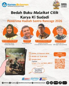 SEMARANG, EDUKATOR–Memperingati Hari Bahasa Ibu Internasional (HBII), Balai Bahasa Provinsi Jawa Tengah (BBPJT) menggelar bedah buku Kumpulan Cerita Cekak (Kumcer) “Malaikat Cilik” karya Ki Sudadi, penerima Hadiah Sastra Rancage 2026. Kegiatan yang berlangsung secara virtual melalui Google Meet itu diikuti sekitar 100 peserta dari kalangan dosen, mahasiswa, guru, peneliti, hingga penikmat sastra Jawa.