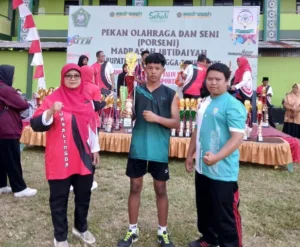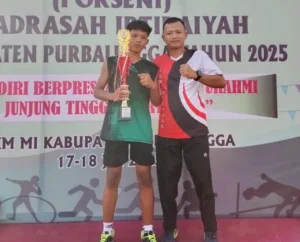 PURBALINGGA, EDUKATOR–Prestasi membanggakan diraih Sukron, murid kelas 6 MI Ma’arif NU Banjarsari, Kecamatan Bobotsari, Purbalingga. Ia sukses menjadi juara 2 cabang lompat jauh pada ajang Pekan Olahraga dan Seni (Porseni) Madrasah Ibtidaiyah Tingkat Kabupaten Purbalingga.